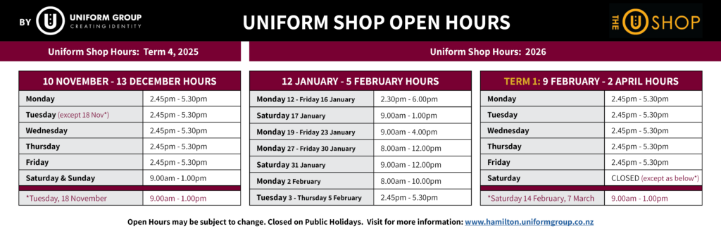 The school uniform shop is now managed and operated by UNIFORM GROUP under their retail brand THE U SHOP.